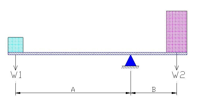 簡易的來解釋,平衡係以力或力矩互相抵消,形成平衡穩定的狀態。如下圖天平槓桿W1為左側重量 , A為W1與支點間的距離;W2為右側重量,B為W2與支點間的距離。若要達平衡狀態,由力學原理我們可得知