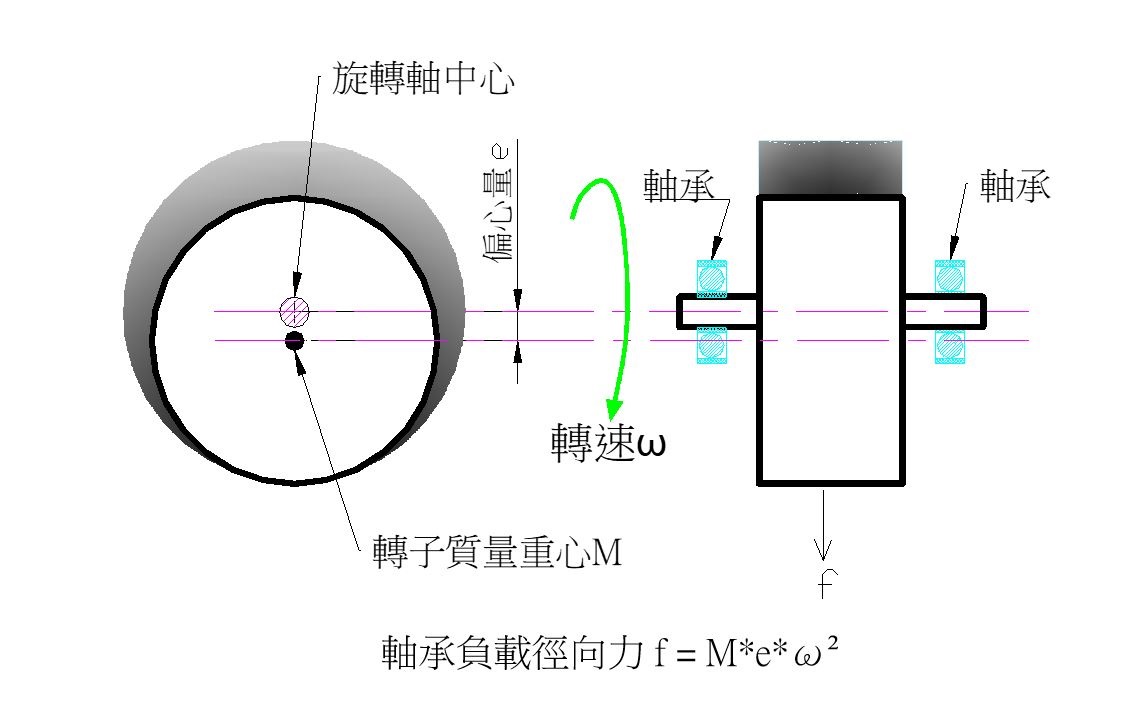 任一旋轉體質量分布不均勻,既表示此旋轉體為不平衡的情形。轉動時,因不平衡量產生離心力,離心力的大小隨轉速升高成正平方比。離心力會造成產品的振動、噪音、並對系統造成負載而降低了產品的品質及壽命。因此校正旋轉體質量平衡以降低振動,提升產品的性能與品質為業界普遍工藝。
