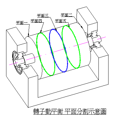 一般我們了解轉子平衡方式有單面動平衡及雙面動平衡。以力學原理分析,一個轉子不平衡量,可以分割成多個平面進行平衡校正。當轉子單面或雙面動平衡校正不足以滿足時,便可以利用其他平面進行平衡校正。
