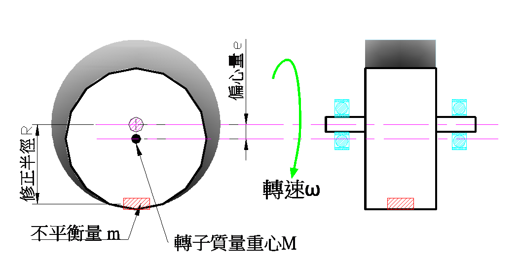 轉子質量(M)* 允許偏心距(e)= 不平衡的允收質量(m)*轉子修正半徑(R)