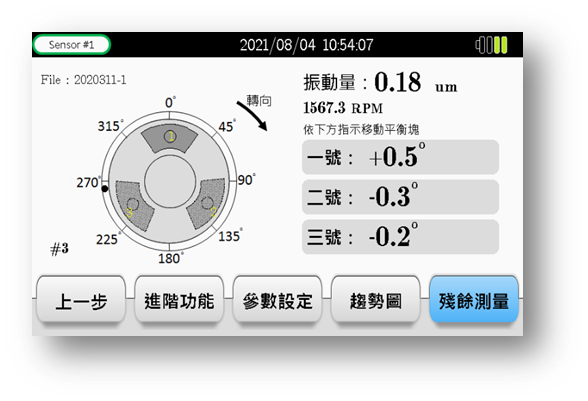 圖型化(Graphical)顯示-直覺式平衡正確快速修正,無經驗也可輕鬆完成平衡校正