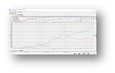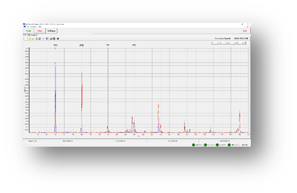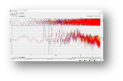 - 瀑布圖 ( Waterfall Plot)--3D 圖形顯示, 多個頻譜的轉速(RPM)關聯性, 可觀察更細微的信號變化